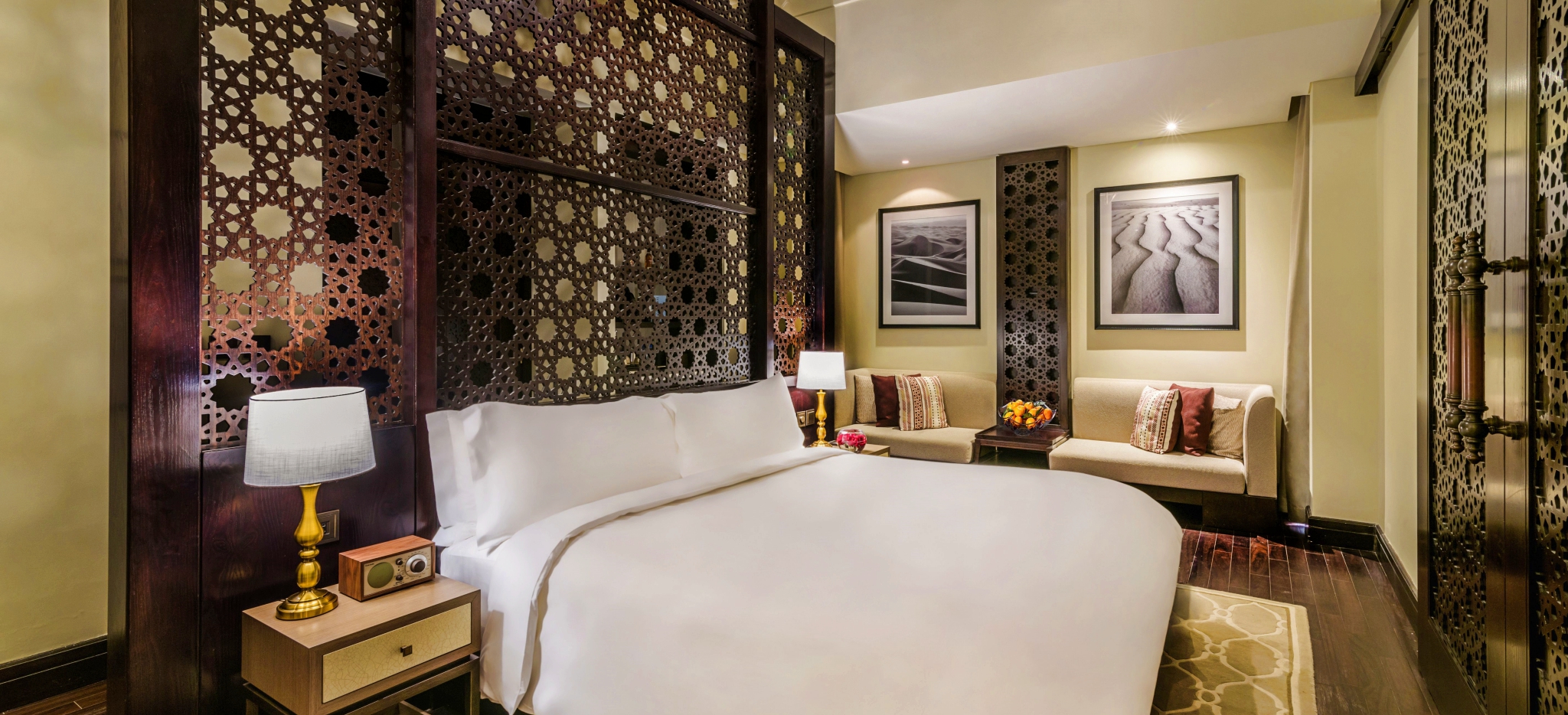Alle Villen sind mit einem privaten Süßwasserpool ausgestattet. Al-Rimal-Pool-Villen (158 m²) und Al-Kaimah-Zelt-Pool-Villen (253 m²) unterscheiden sich nicht nur durch Größe voneinander sondern auch in ihrer Architektur. Die großen Zelt-Pool Villen wurden Nomadenzelten nachempfunden, die Deluxe-Villen ähneln den Villen wohlhabender Einheimischer in Ras Al Khaimah City. Die 32 Strandvillen beim "Beach Club" haben 170 m² Wohnfläche, einen privaten Pool. Sie sind ebenso komfortabel ausgestattet wie die Villen in der Wüste.