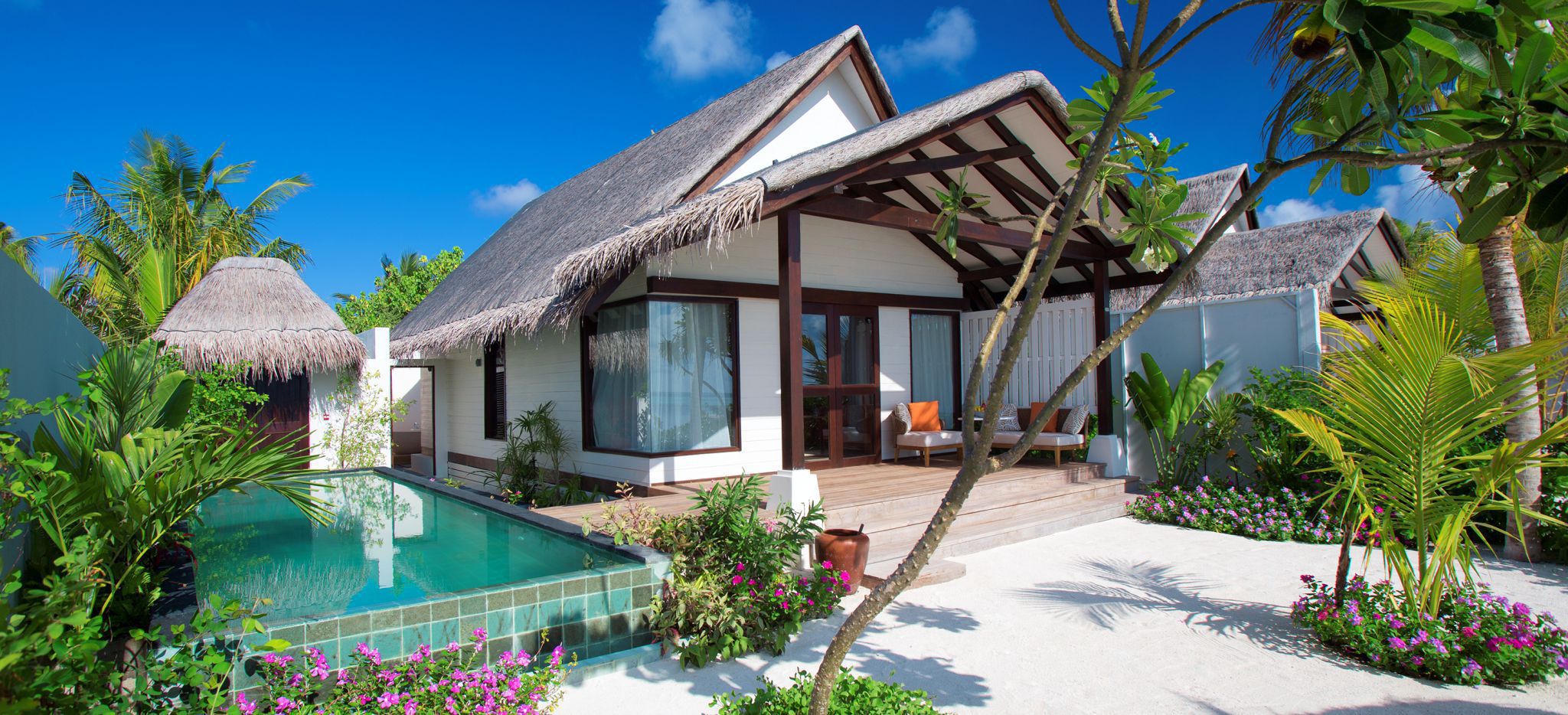 Auf der Insel befinden sich lediglich 44 Villen am Strand ("Earth Villas") und 51 Villen auf Stelzen in der Lagune ("Wind Villas"). 17 von 31 "Earth Villas" mit 185 m² Wohnfläche und 24 von 48 "Wind Villas" (85 bis 112 m²) haben einen 8 Meter langen, privaten Süßwasserpool mit ungestörtem Blick auf die untergehende Sonne. Die Earth Villen haben ein Außendeck, einen tropischen Garten und ein Außen-Badezimmer. Daneben gibt es einige gleich große Earth Villen mit einem 20 m² großen Privatpool zusätzlich. Die Wind Villen über der Lagune sind 85 m² groß und haben ein privates Außendeck mit Zugang zur Lagune. Auch hier gibt es eine etwas größere Version mit privatem Süßwasserpool (112 m²).