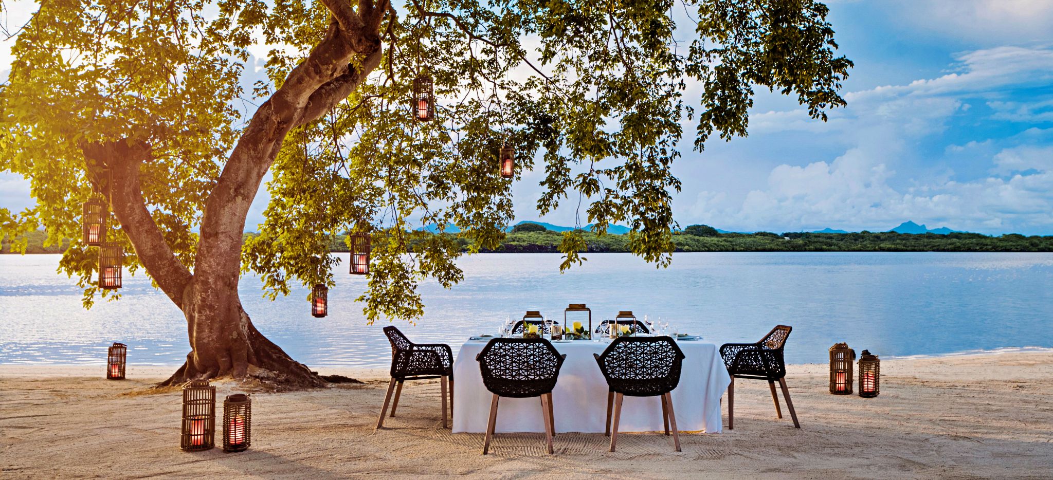 Frühstück und Halbpension werden im Restaurant La Terrasse eingenommen, das ein umfangreiches, mit internationalen Gerichten bestücktes Buffet anbietet. Halbpensionsgäste, die in einem der à-la-carte-Restaurants (Prime und Rasoi by Vineet) essen, erhalten eine Ermäßigung von etwa 40 € (Kinder 20 €) auf die in der Karte verzeichneten Preise. Das Rasoi by Vineet ist auf Mauritius für seine authentische indische Küche bekannt. Es liegt in einem eigenen Gebäude, zum Teil auf Stelzen über der Lagune.