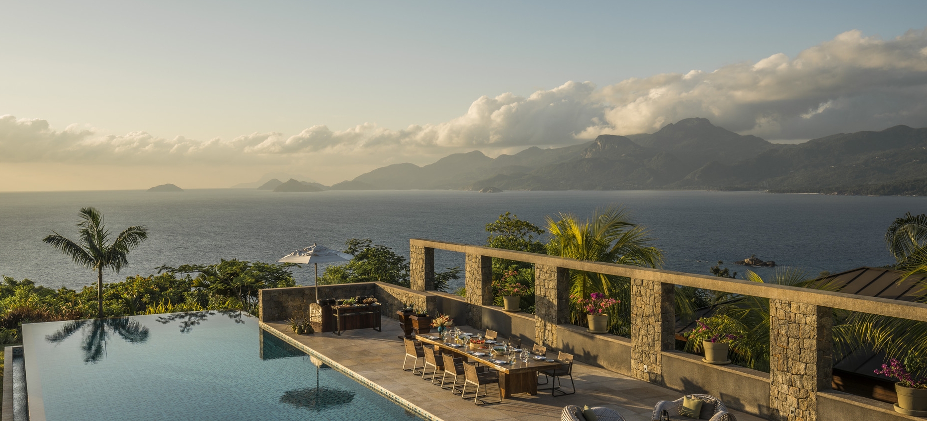 Dieses Luxushotel liegt in der Petite Anse im Süden Mahés, einer der schönsten Badebuchten der Seychellen. Die Villen sind über einen mit dichtem Grün bewachsenen Hang verteilt und bieten einen grandiosen Ausblick auf das Meer und die Küsten Westmahés.